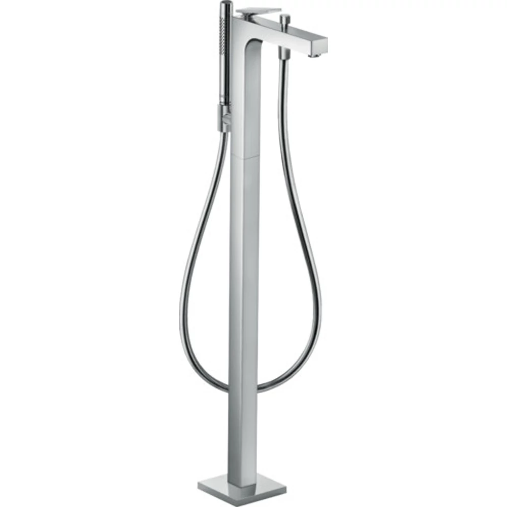 A termék a következőket tartalmazza: egykaros, padlón álló kádcsaptelep, kézizuhany, zuhanytömlő, zuhanytartó, szerelési útmutató