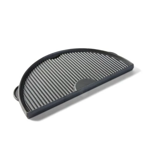 Ez a félhold alakú öntöttvas sütőlap nagyon praktikus kiegészítője a Big Green Eggnek. Egyik oldala bordázott, másik oldala sima, így igazán sokoldalúan használható. A sima oldalon süthetünk például tojást és különböző palacsintaféléket, míg a bordázott felületet ízletes halfilék vagy grillezett szendvicsek elkészítésre használhatjuk. Ráadásul a félhold sütőlap csak a sütőfelület felét foglalja el, így használatával egy időben akár grillezhetünk is.