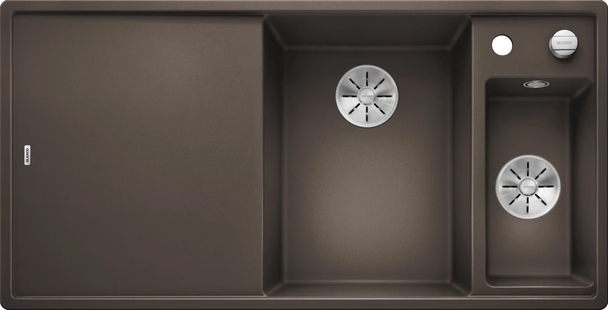 A barna mosogatótálcák egyre több konyhában bukkanak fel, leginkább a klasszikus és vintage belsőépítészeti stílussal rendelkező otthonokban. BLANCO AXIA III 6 S gránit mosogató üveg vágólap, rozsdamentes multifunkciós tál, InFino távműködtető jobbos kávé 523482 termékünk egyszerű és letisztult formája mellett további előnye, hogy jól passzol a konyhai berendezésekhez és kevésbé koszolódik, mint világos társai.