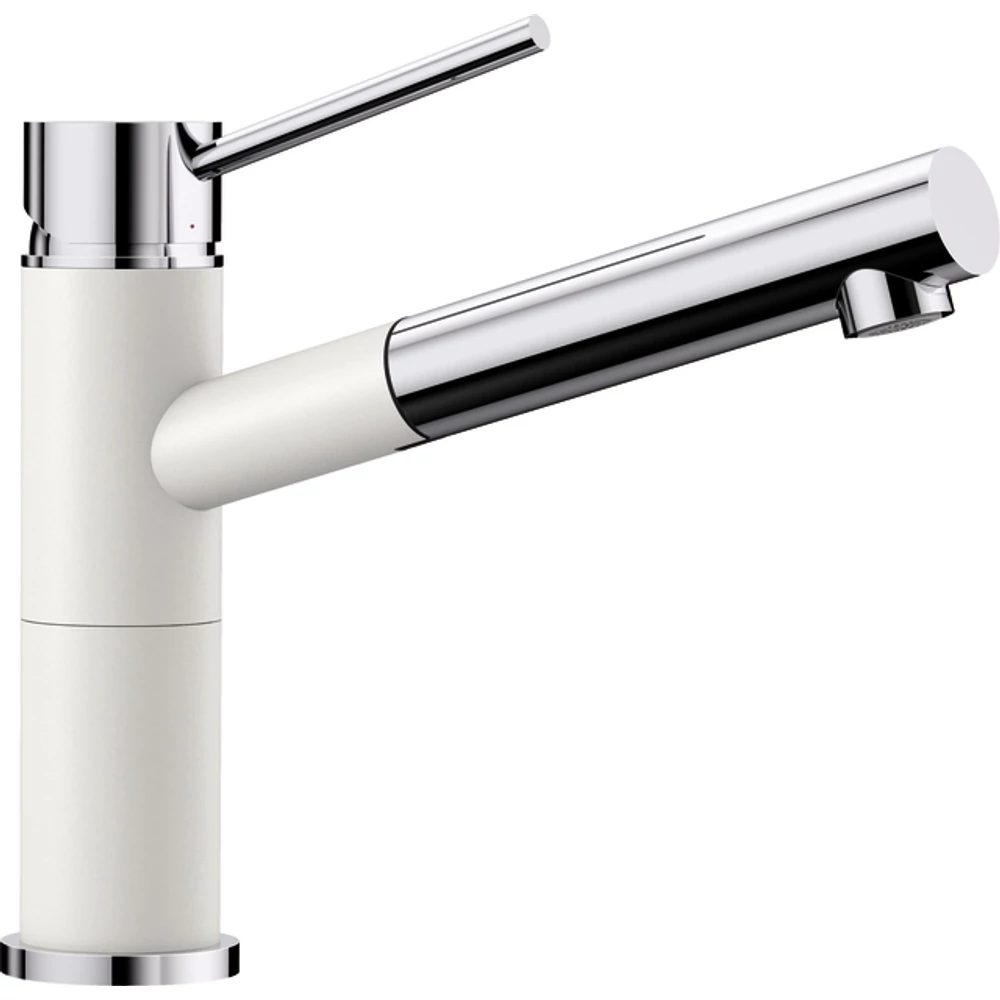 A BLANCO ALTA-S Compact Silgránit kihúzható fejes mosogató csaptelep (fehér, #515327) termékünk a korszerű, egykaros mosogató csaptelepek családjába tartozik. Azon túl, hogy ez a megoldás modern stílust kölcsönöz konyhájának, rendkívül praktikus is. Az egykaros megoldásnak köszönhetően ugyanis egy mozdulattal tudja állítani a kívánt vízerősséget és hőfokot. Az elzárása legalább ugyanilyen könnyű, sőt. Újbóli használat során nem kell feltétlenül a hőmérséklet beállítással kezdenie, elég csak a jól megszokott állásban hagyni a kart. Kényelmes megoldás a XXI. század konyháiba.