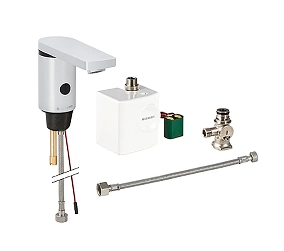 Geberit 186 álló automata mosdócsaptelep generátorral, külső keverőszeleppel 116.366.21.1