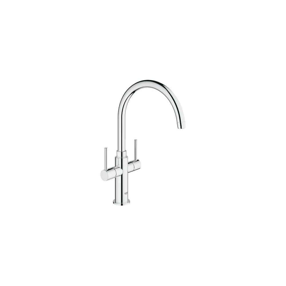 A Grohe kétkaros mosogatócsap 1/2" 30190000 termékünk a klasszikus, kétkaros mosogató csaptelepek családjába tartozik. Amennyiben konyhájában inkább a hagyományos, már-már vintage stílus uralkodik, bátran javasoljuk ennek a kétkaros csaptelepnek a beszerzését. Ezek az ún. "keverőszelepes" verziók általában tartósabbak és megbízhatóbbak egykaros társaiknál, továbbá a modern víztakarékos rendszereknek köszönhetően már szinte ugyanannyira környezetbarátak, mint a modernebb társai. Klasszikus megoldás, vintage vagy hagyományos stílusú konyhákba.