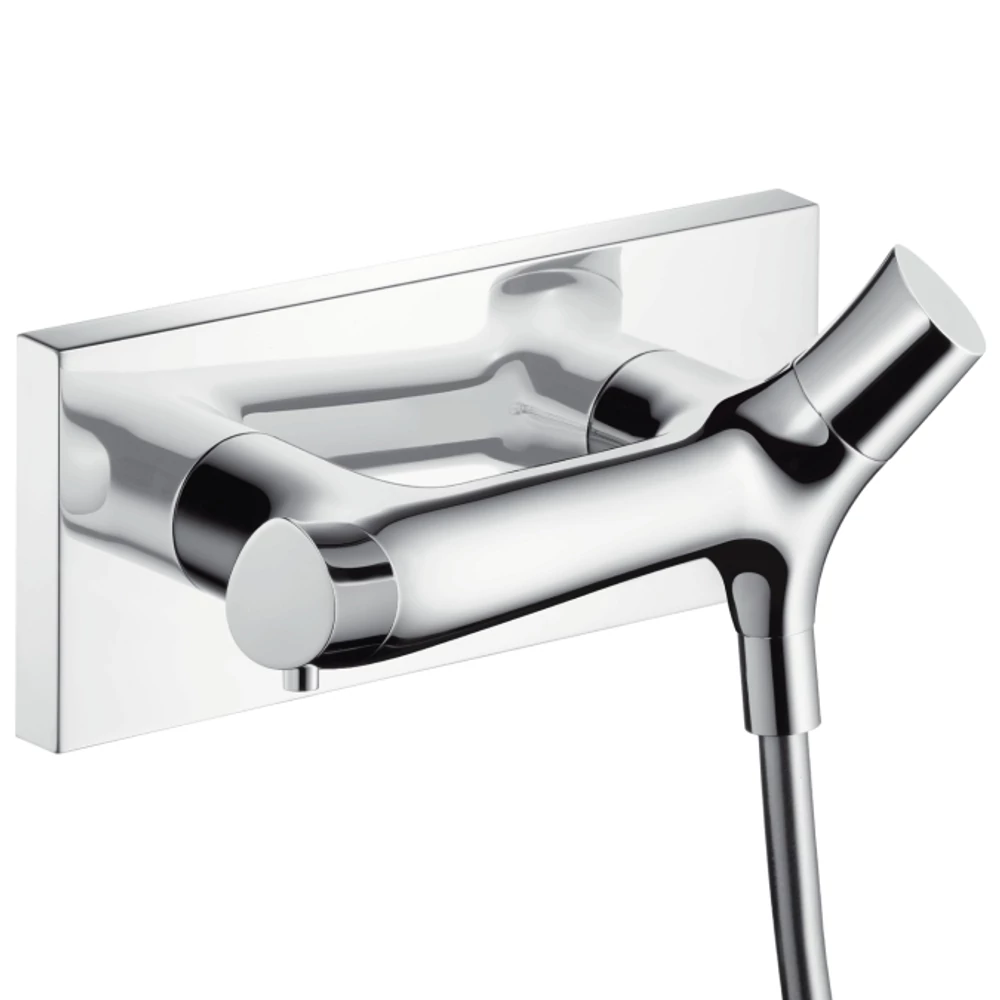 Hansgrohe AXOR Starck Organic Termosztátos zuhanycsaptelep falsíkon kívüli szereléshez 12602 000 (12602000) termosztátos kerámiabetét 1 fogyasztós biztonsági gomb 40°C-nál vízátfolyás mennyisége 20 l/perc állítható hőfokkorlátozó átfolyási mennyiség: 20 l/perc visszafolyás-gátló szelep zajcsillapítóval anyaga: rézöntvény kiállások közötti távolság 150 mm ± 12 mm