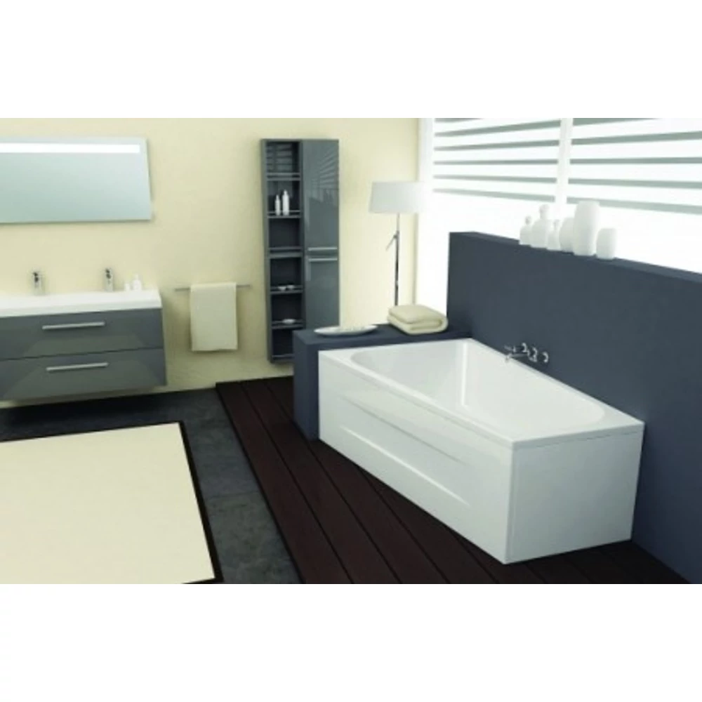 A kád 6mm vastag homogén egészségügyi akril alapanyagból készült, 2cm vastag forgácslap merevítés, üvegszál+műgyanta erősítéssel