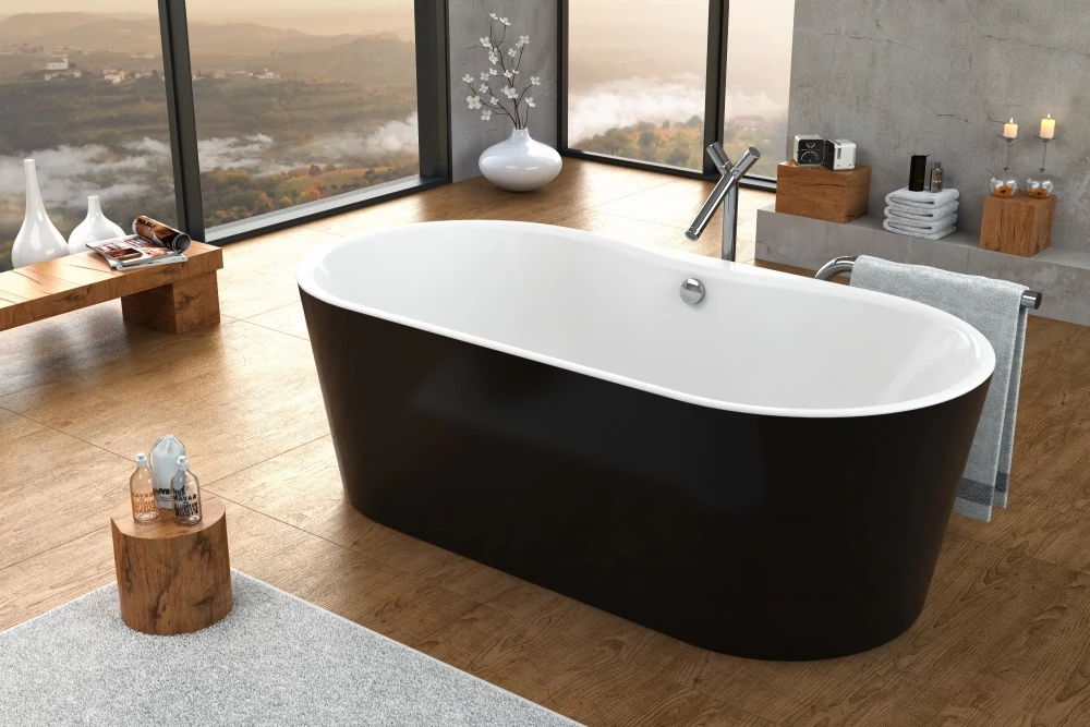 A kád 6mm vastag homogén egészségügyi akril alapanyagból készült, 2cm vastag forgácslap merevítés, üvegszál+műgyanta erősítéssel