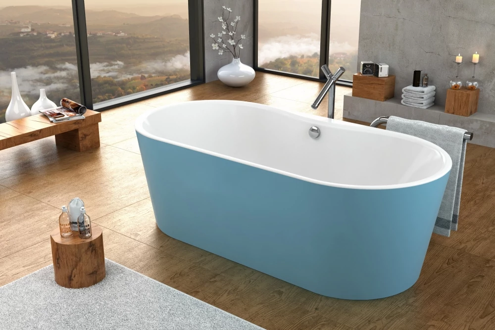 A kád 6mm vastag homogén egészségügyi akril alapanyagból készült, 2cm vastag forgácslap merevítés, üvegszál+műgyanta erősítéssel