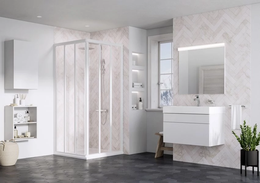 Egy teljes zuhanysarok kialakításához 2 db ASRV3 zuhanyfal szükséges.