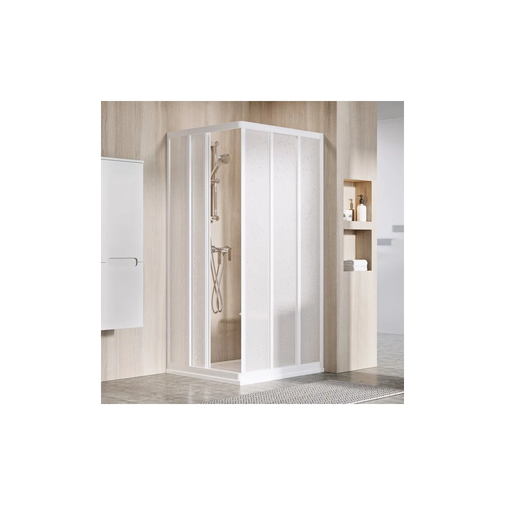 Egy teljes zuhanykabin kialakításához két darab ASRV3 tolóajtó szükséges, a sarokelem minden csomagolás tartozéka. Mindkét rész különböző méretének kombinációjával négyzet vagy téglalap alapú zuhanykabint alakíthatunk ki (pl.: 75 x 90 cm, 80 x 90 cm és így tovább).