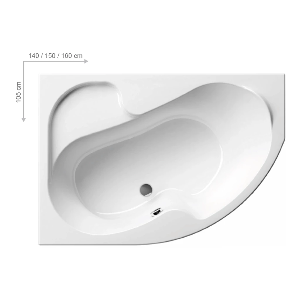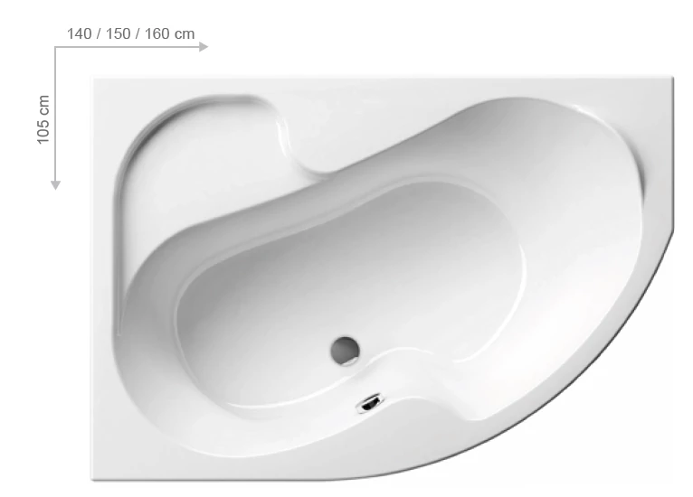 A kád mérete 105 x 140 cm, lehetővé teszi elhelyezését a legkisebb fürdőszobákban is.