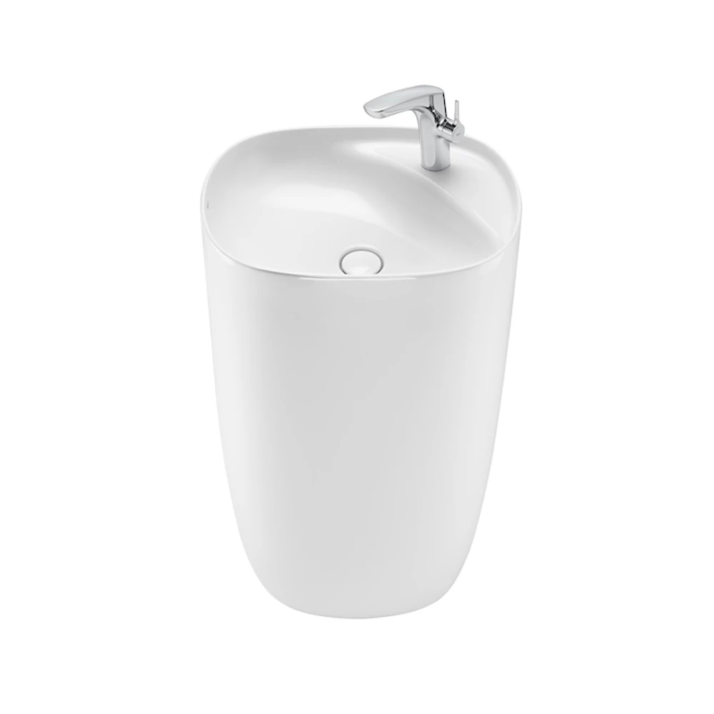 Szabadonálló totem mosdó, beépített lefolyóval.