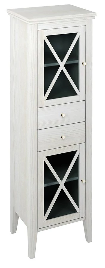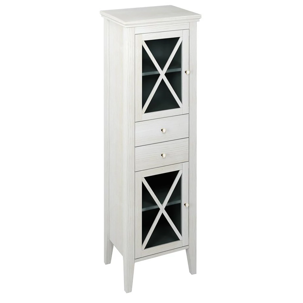 SAPHO CROSS állószekrény, 2 üvegajtóval, 2 fiókkal, balos, 47x170x39cm, antik fehér (CR214)