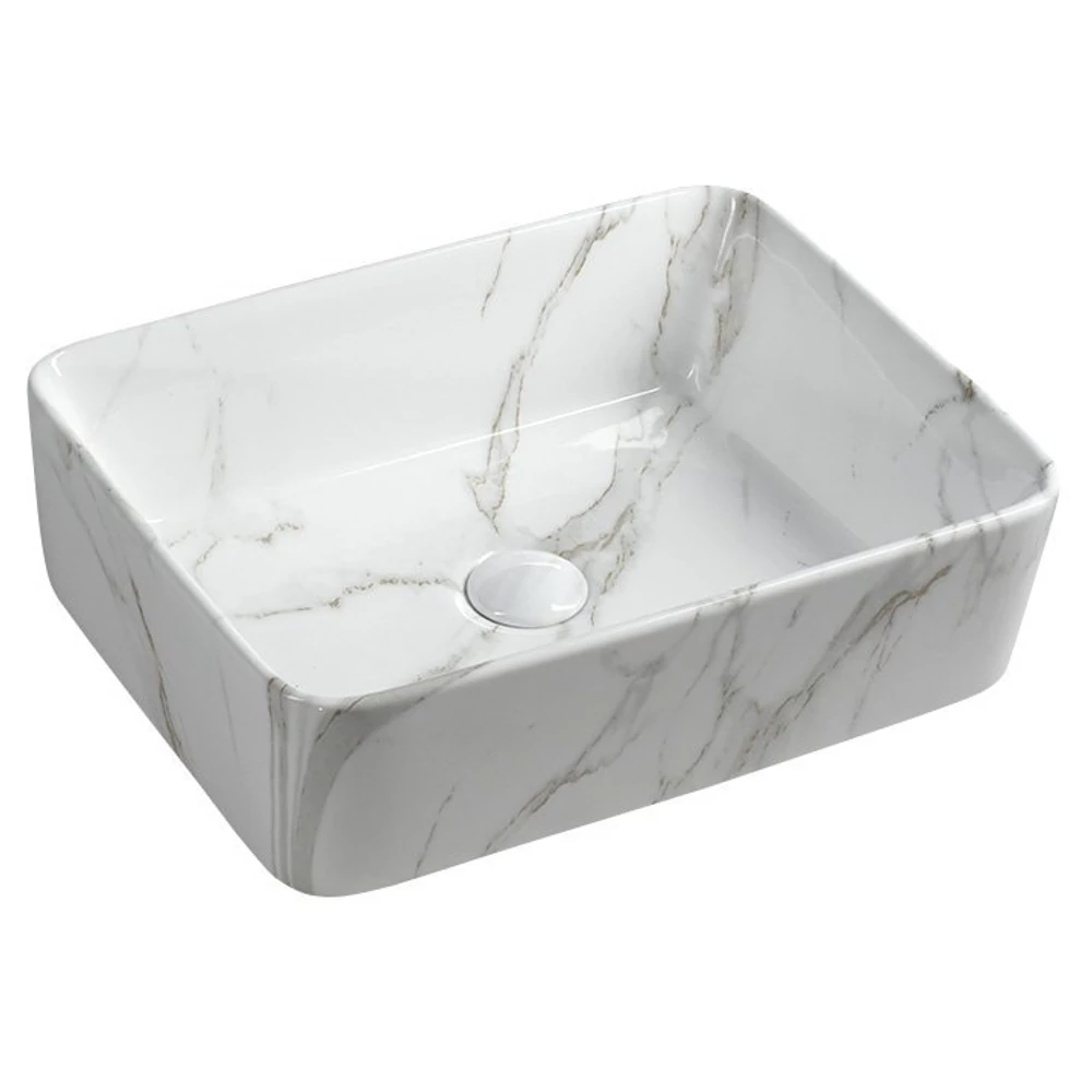SAPHO DALMA kerámiamosdó, 48x38x13cm, fehér márvány (MM517)