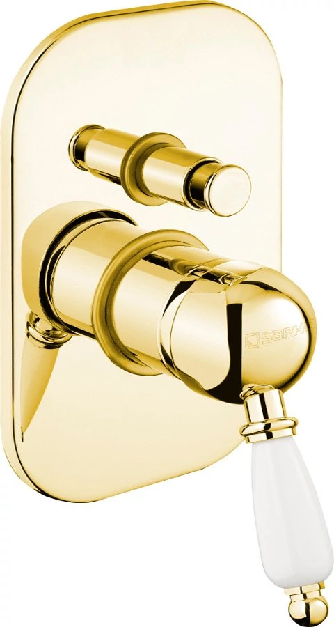 Mindig is népszerűek voltak az arany színű csaptelepek, főleg a klasszikusabb fürdőszobák esetében - igaz, egy modern belsőépítészben is megállják a helyüket. Ahogyan a Sapho KIRKÉ falba süllyesztett csaptelep, 2-irányú váltóval, fehér kerámia karral, arany (KI42BZ) termékünk is, kiválóan kombinálható fehér vagy fekete bútorokkal, esetleg markánsabb márvány burkolatokkal. A luxus hatás azonnal érvényesül, amint valaki meglátja ezt a csaptelepet. Valódi fényűző stílussal és összetéveszthetetlen eleganciával válik a fürdőszoba ékkövévé, amit hosszú éveken, évtizedeken keresztül imádni fog, ezt garantáljuk.
