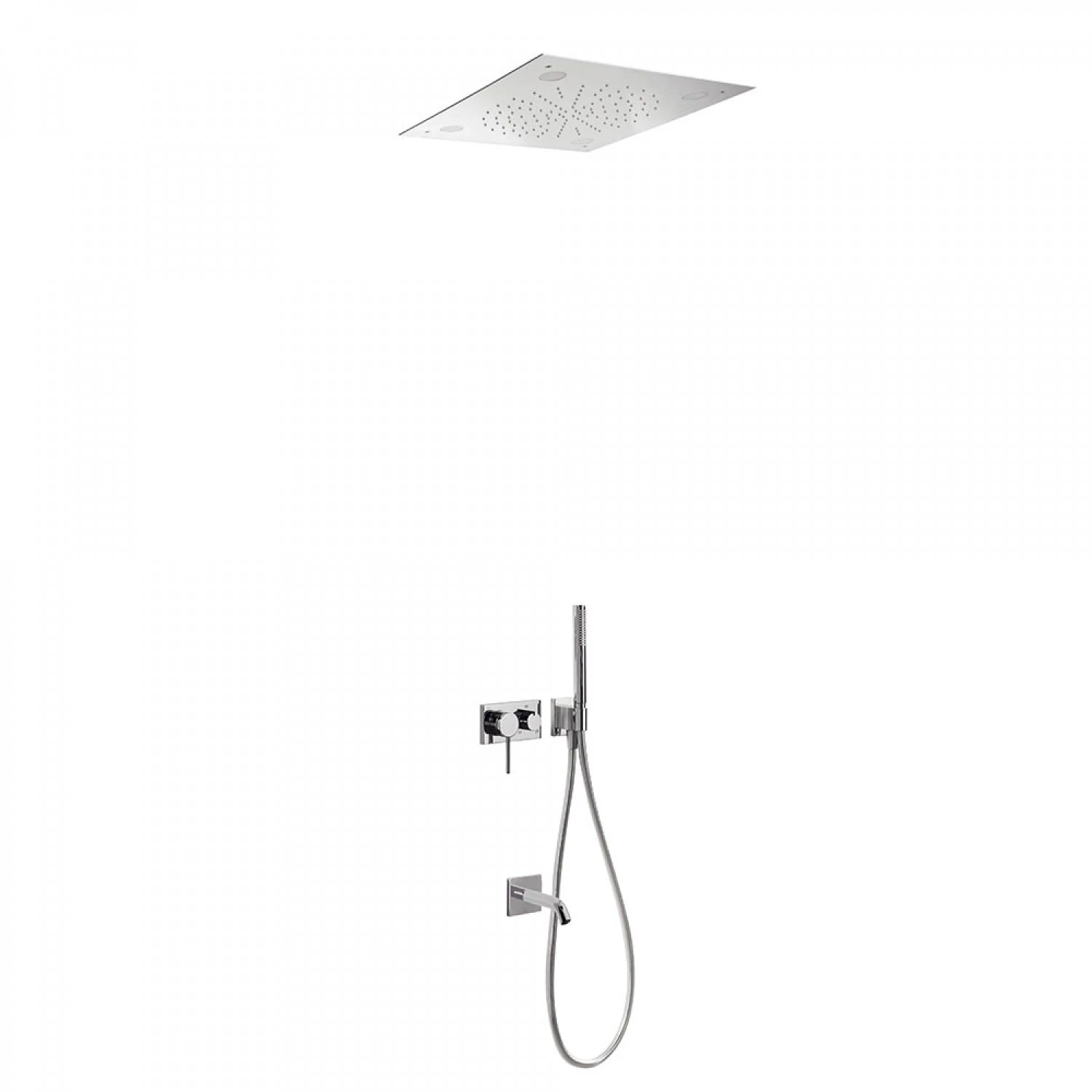 • 500 x 500 mm-es rozsdamentes acél mennyezeti fejzuhannyal