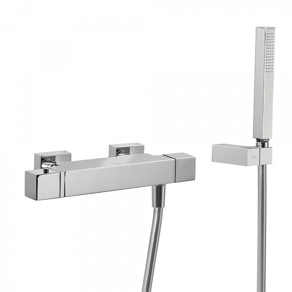A Tres több, mint 50 éves történelme során mindvégig ugyanazt a célt tartotta szem előtt: felhasználói igények kielégítése mindenki számára hozzáférhető termékekkel. A gyár folyamatos fejlesztésével igyekszenek kielégíteni a felhasználók változó igényeit, így szinte bárki megtalálhatja a hozzá és otthonához illő csaptelepeket, szaniter kiegészítőket. A Tres Cuadro-Tres falon kívüli termosztátos zuhanycsaptelep kézi zuhannyal 1071649 termékük kiváló ár-érték arányú, ámde minőségi termék, az európai szaniter piac méltó tagja.