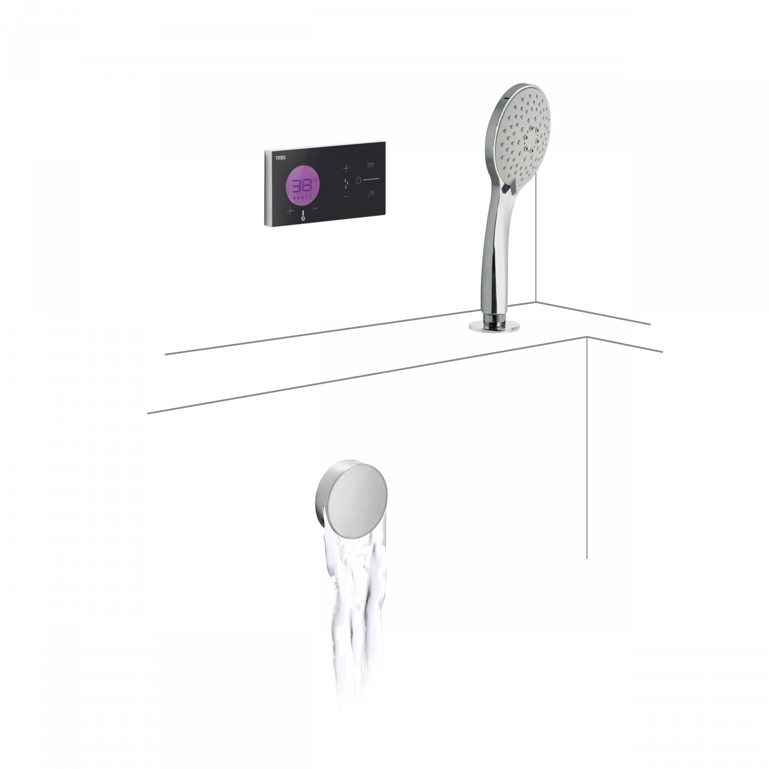 Tres Shower Technology falba építhető elektronikus termosztátos kádszett 09288573