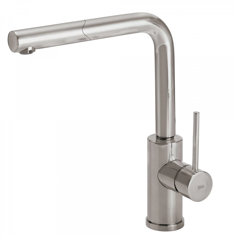 A Tres Top-Tres egykaros kihúzható mosogatócsaptelep 56243703 termékünk a korszerű, egykaros mosogató csaptelepek családjába tartozik. Azon túl, hogy ez a megoldás modern stílust kölcsönöz konyhájának, rendkívül praktikus is. Az egykaros megoldásnak köszönhetően ugyanis egy mozdulattal tudja állítani a kívánt vízerősséget és hőfokot. Az elzárása legalább ugyanilyen könnyű, sőt. Újbóli használat során nem kell feltétlenül a hőmérséklet beállítással kezdenie, elég csak a jól megszokott állásban hagyni a kart. Kényelmes megoldás a XXI. század konyháiba.