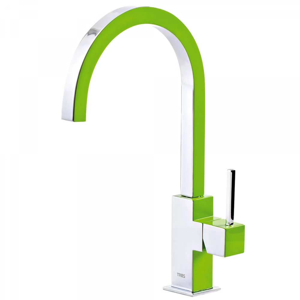 A Tres Top-Tres egykaros mosogatócsaptelep 22 x 22 mm-es kifolyóval zöld-króm 130497VE termékünk a korszerű, egykaros mosogató csaptelepek családjába tartozik. Azon túl, hogy ez a megoldás modern stílust kölcsönöz konyhájának, rendkívül praktikus is. Az egykaros megoldásnak köszönhetően ugyanis egy mozdulattal tudja állítani a kívánt vízerősséget és hőfokot. Az elzárása legalább ugyanilyen könnyű, sőt. Újbóli használat során nem kell feltétlenül a hőmérséklet beállítással kezdenie, elég csak a jól megszokott állásban hagyni a kart. Kényelmes megoldás a XXI. század konyháiba.