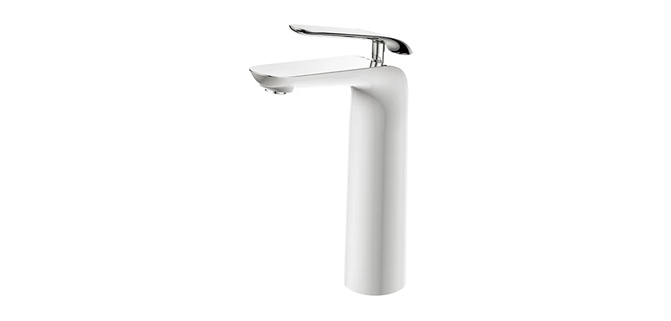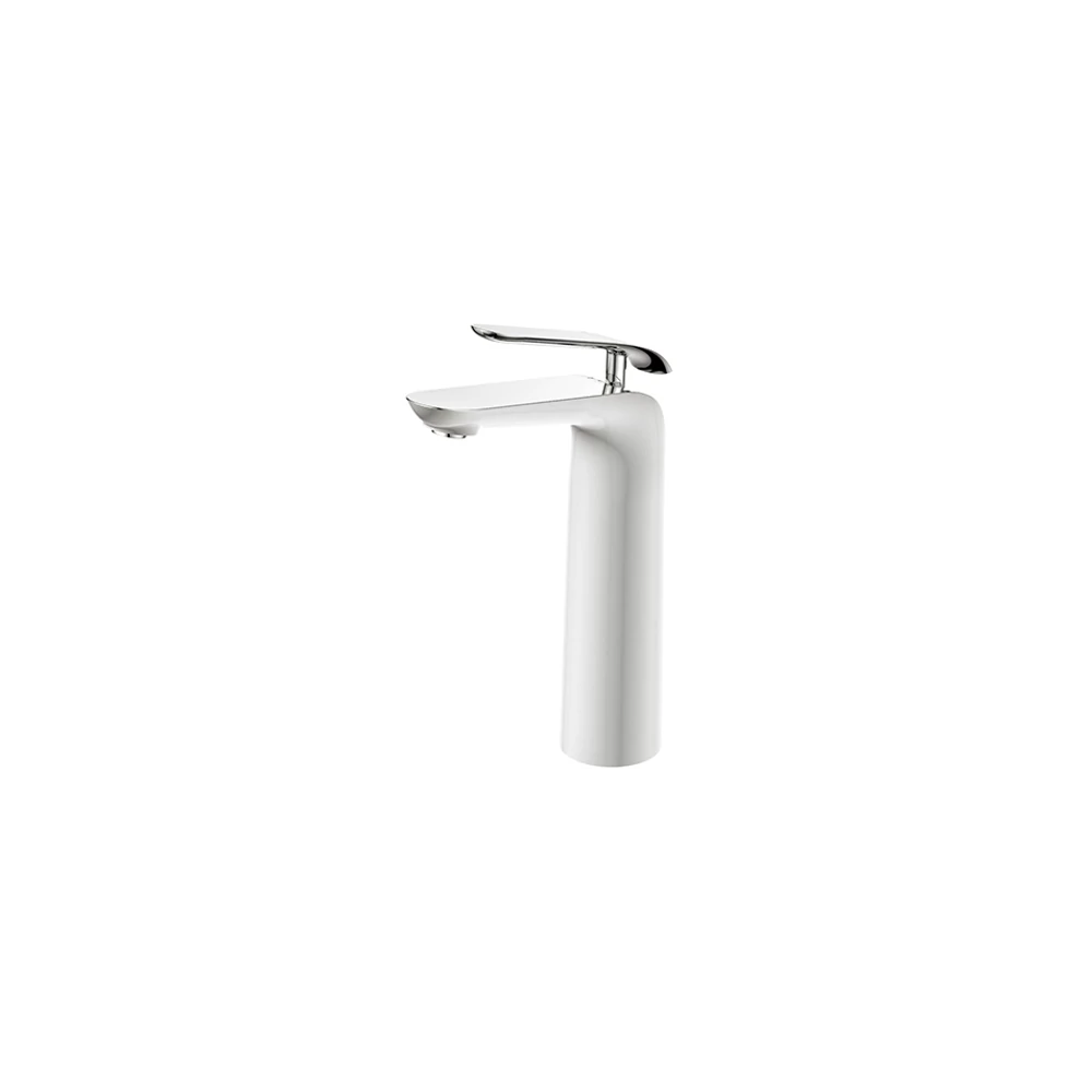 Egykaros magas mosdó csaptelep fehér/króm színben. Sárgaréz csaptelep test Kerámiabetét